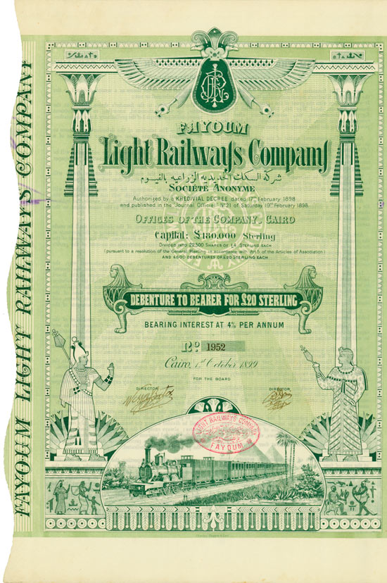 ملف:Stock exchange certificate of Fayoum Light Railways Company.jpg