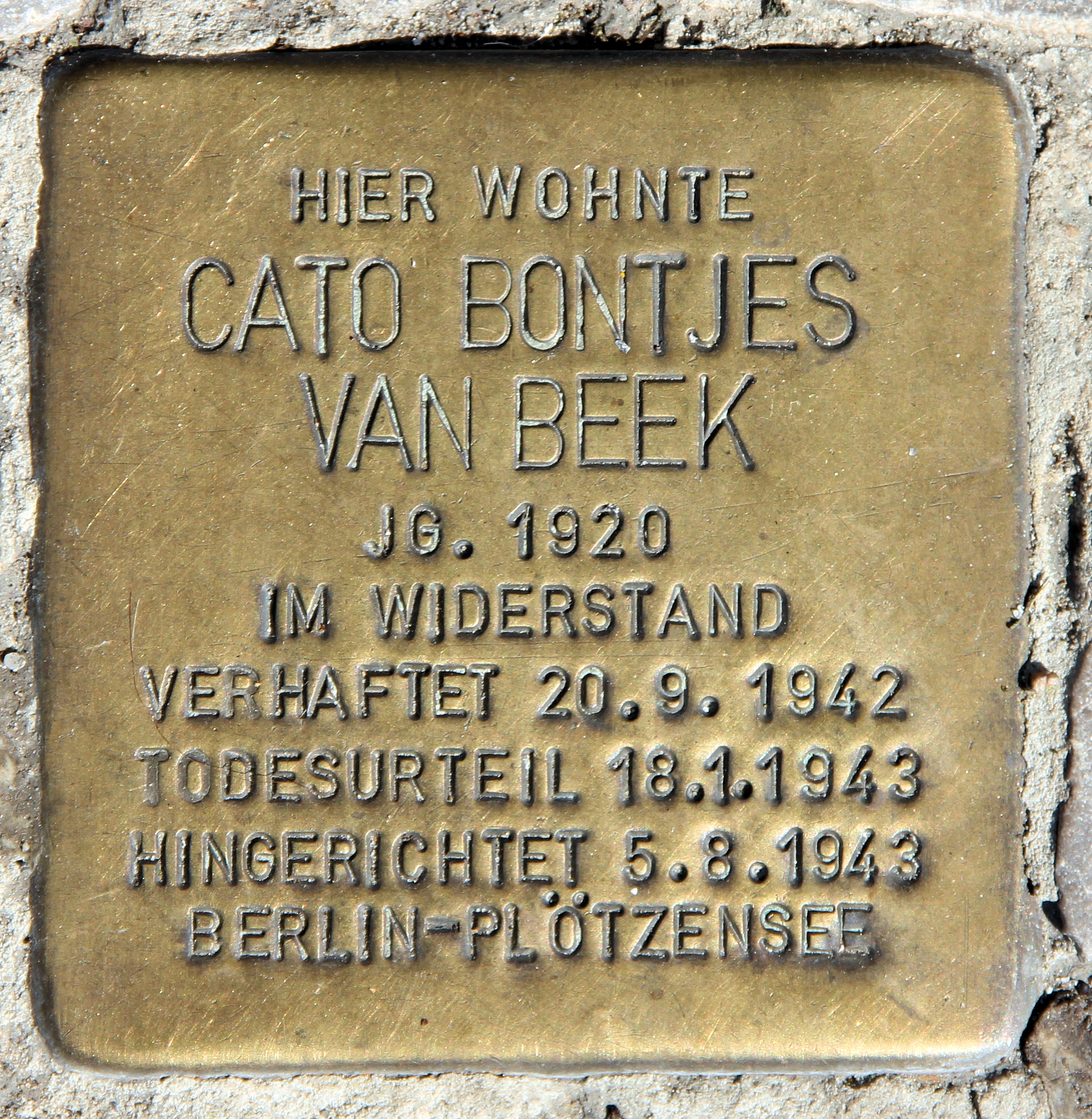 ملف:Stolperstein Kaiserdamm 22 (Weste) Cato Bontjes Van Beek.jpg