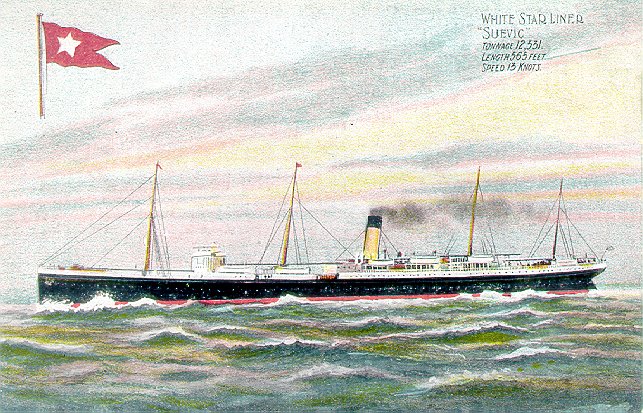 English: Postcard of the White Star liner Suevic under way |