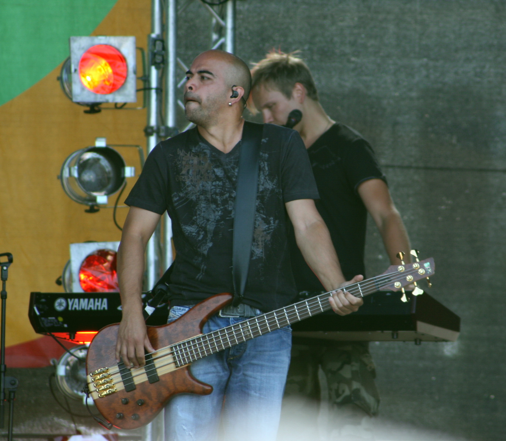 Deutsch: Sunrise Avenue - im Vordergrund Raul, im Hintergrund Osmo Ikonen. |