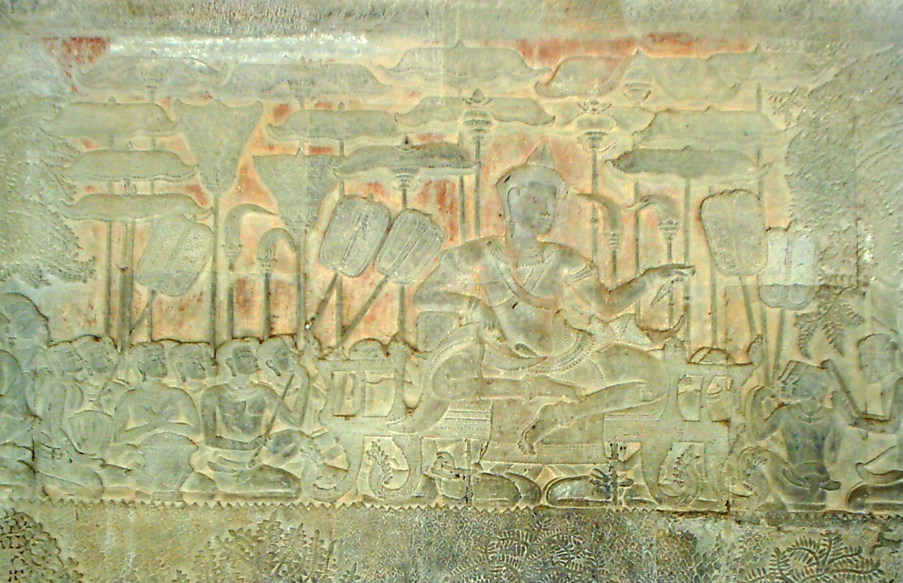Suryavarman II depicted in a bas-relief at Angkor Wat. Image by User:Markalexander100