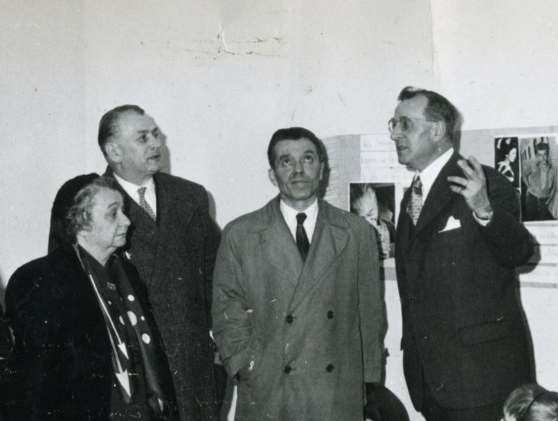 Français : Rencontre en 1957 de Jean Lonjaret (à droite) et de Suzanne Borel-Maisonny (à gauche). Le CROP (Centre de Ressource de l'Ouie et de la Parole) de Châtillon d'Azergues, devenu ensuite l’institut Jean Lonjaret, a accueilli les premiers enfants sourds le 17 novembre 1956. |