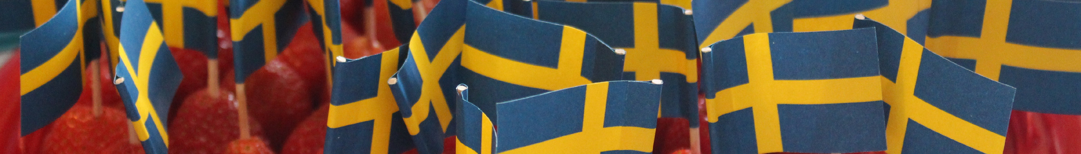 English: Swedish flags on Midsummer strawberry plate |