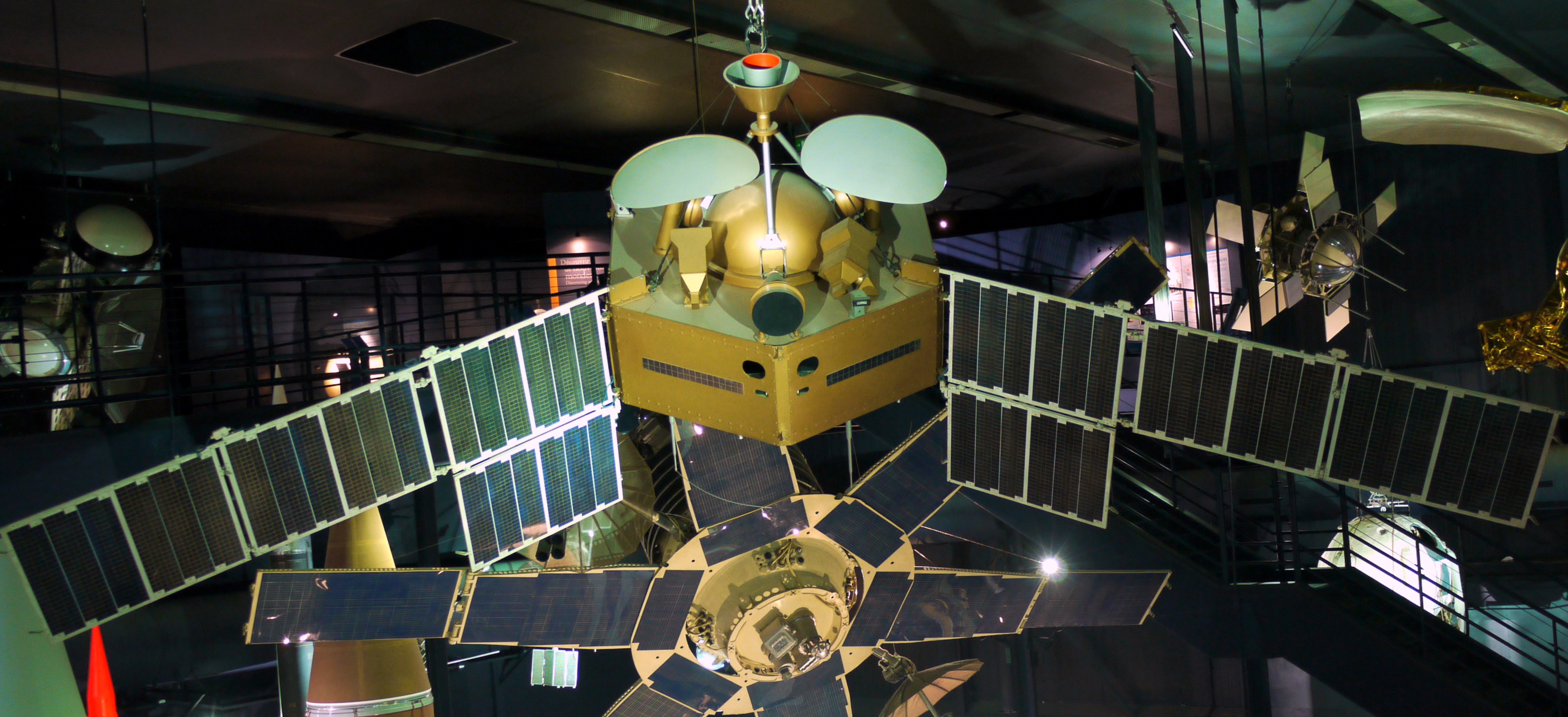 Français : Maquette du premier satellite expérimental de télécommunications franco-allemand Symphonie 1 (1974), Musée de l'Air et de l'Espace, Paris Le Bourget (France)