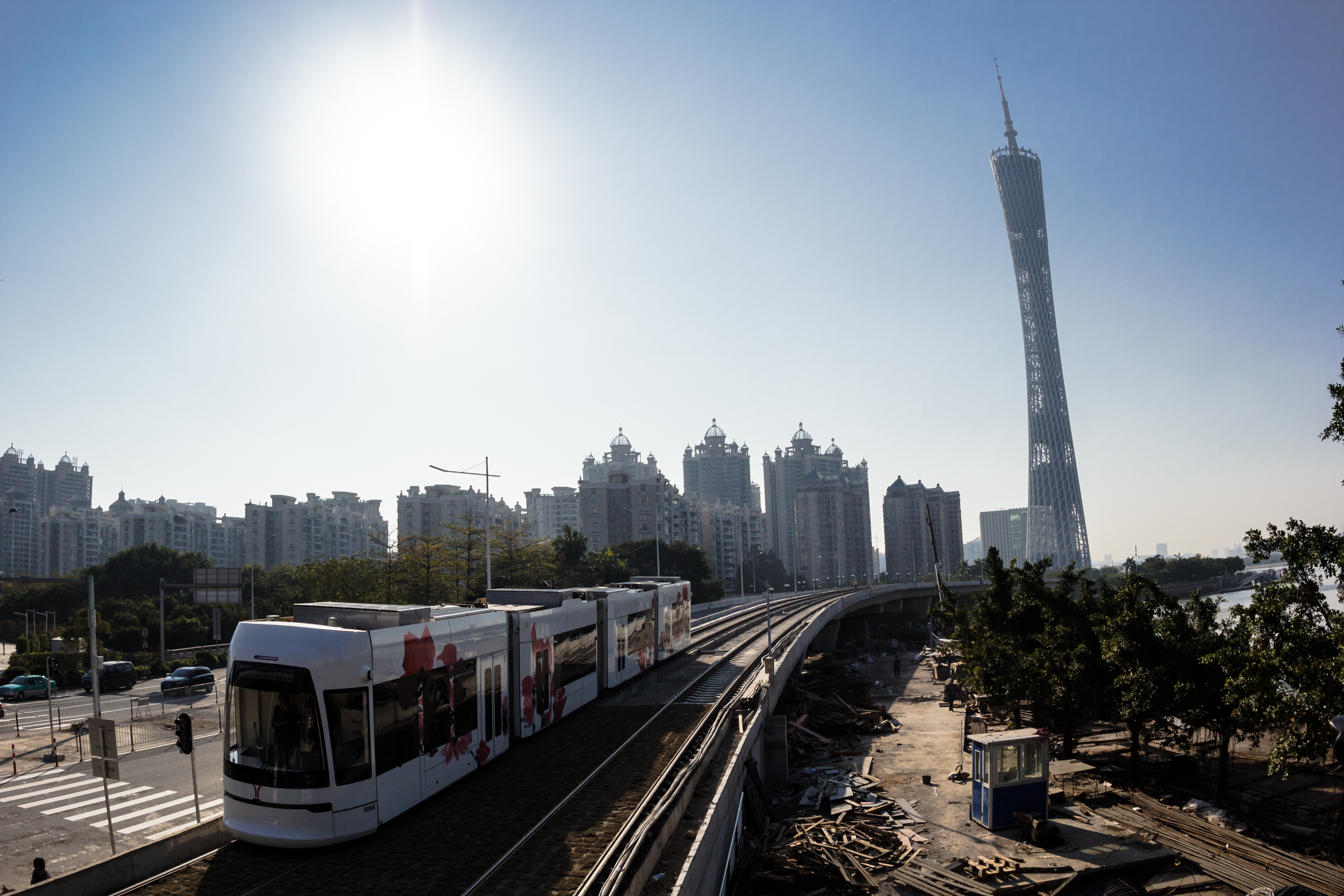 قالب:Zh-cn English: 4th tram of THZ1 passes through Whompoa Chung Bridge |