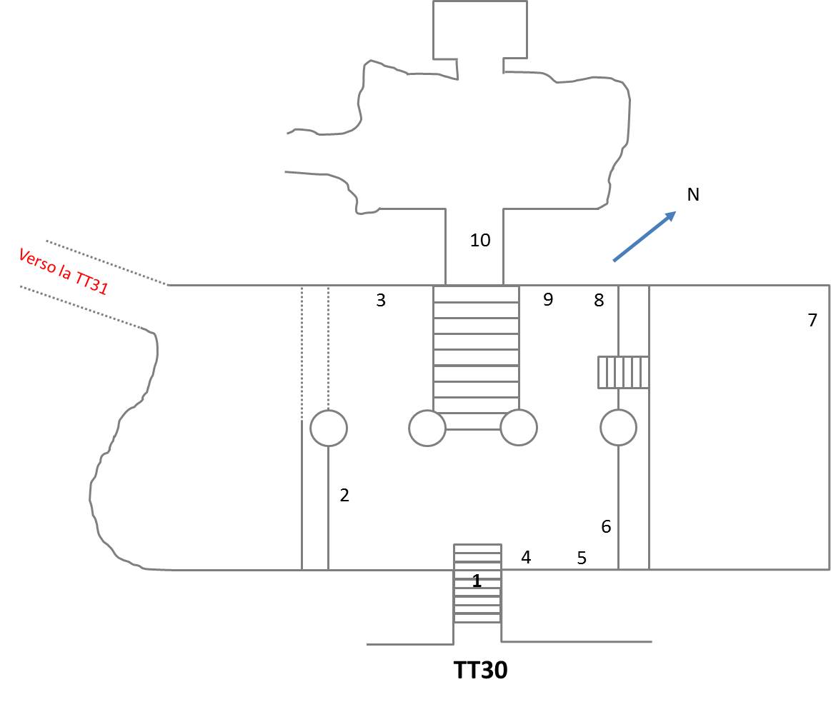 Italiano: Planimetria schematica della tomba TT30 |