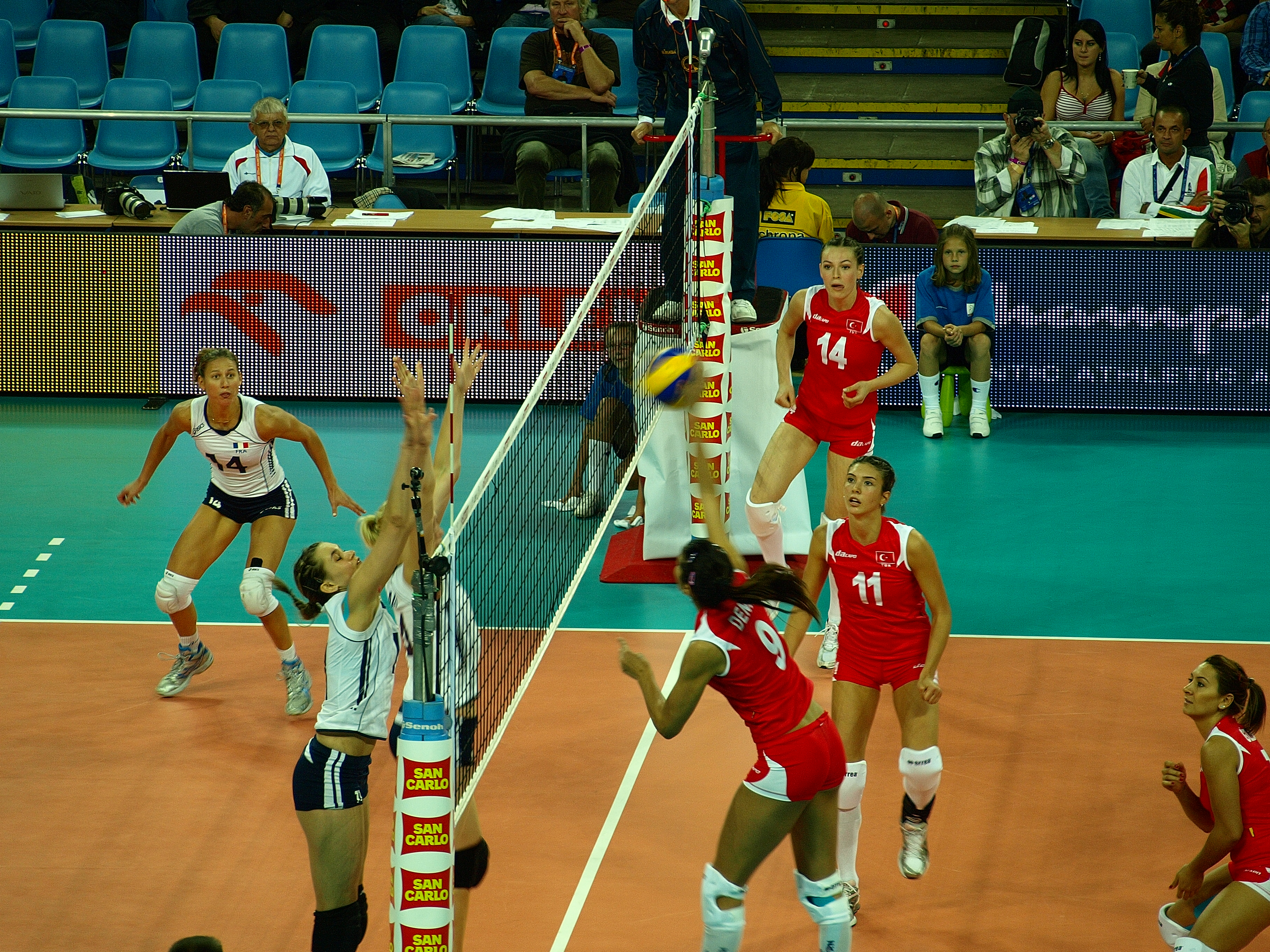 English: 2009 Women's European Volleyball Championship match between Turkey and France in Hala Stulecia in Wrocław (Poland)