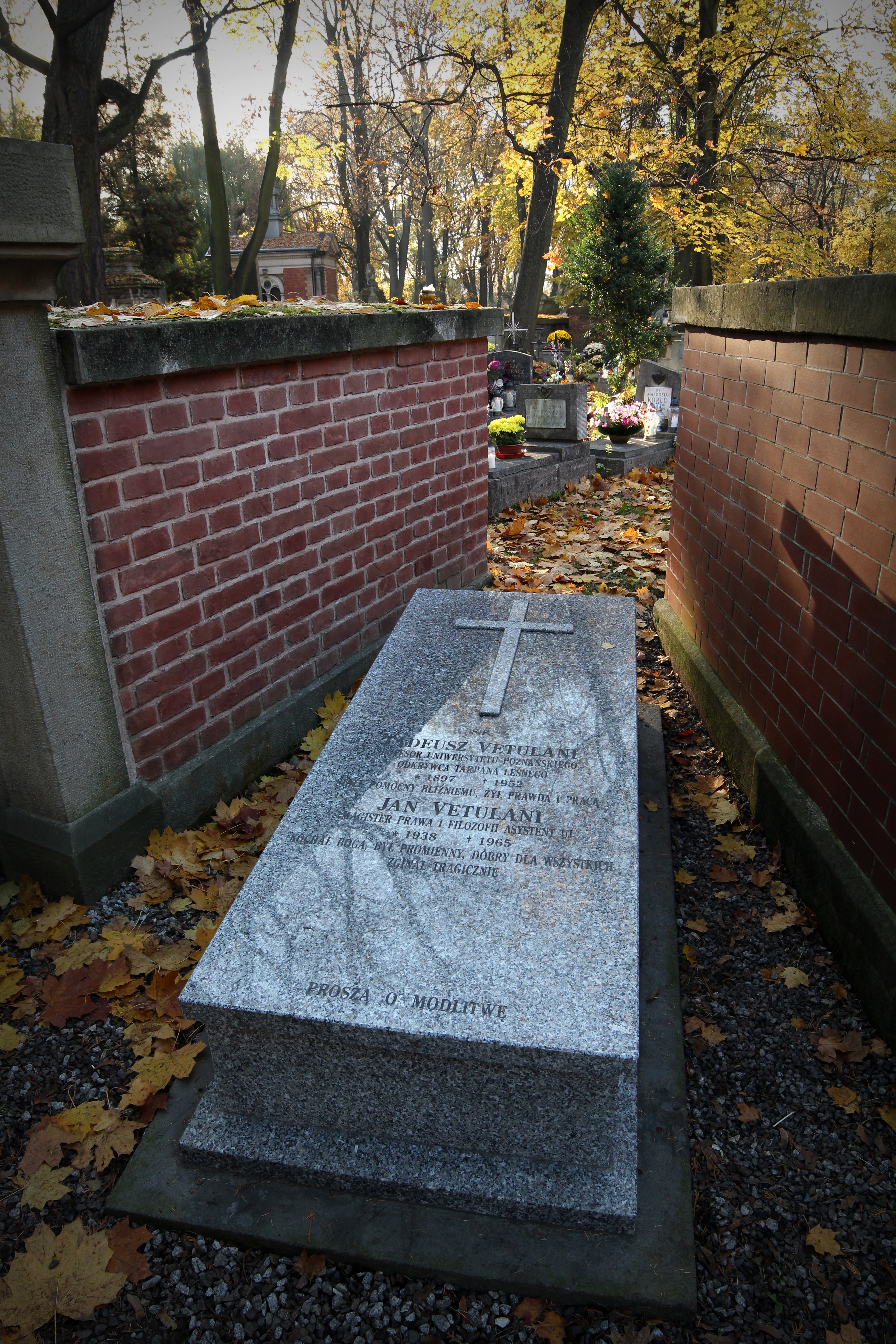 Polski: Grób Tadeusza Vetulaniego i jego bratanka Jana Vetulaniego na Cmentarzu Rakowickim w Krakowie.