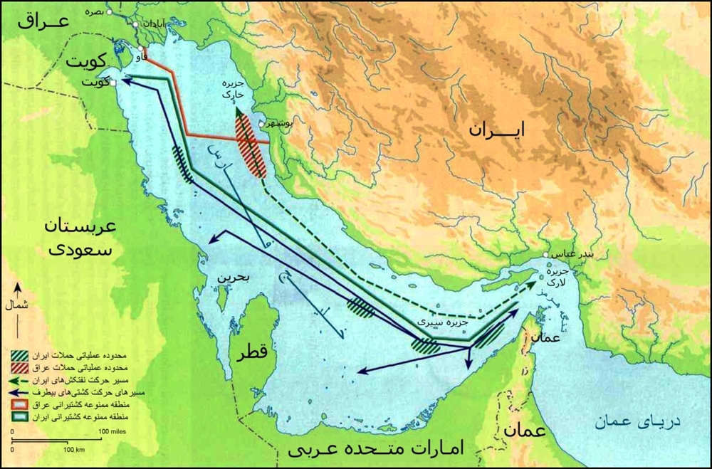 English: Map of the Tanker War, Iran–Iraq War (Persian)