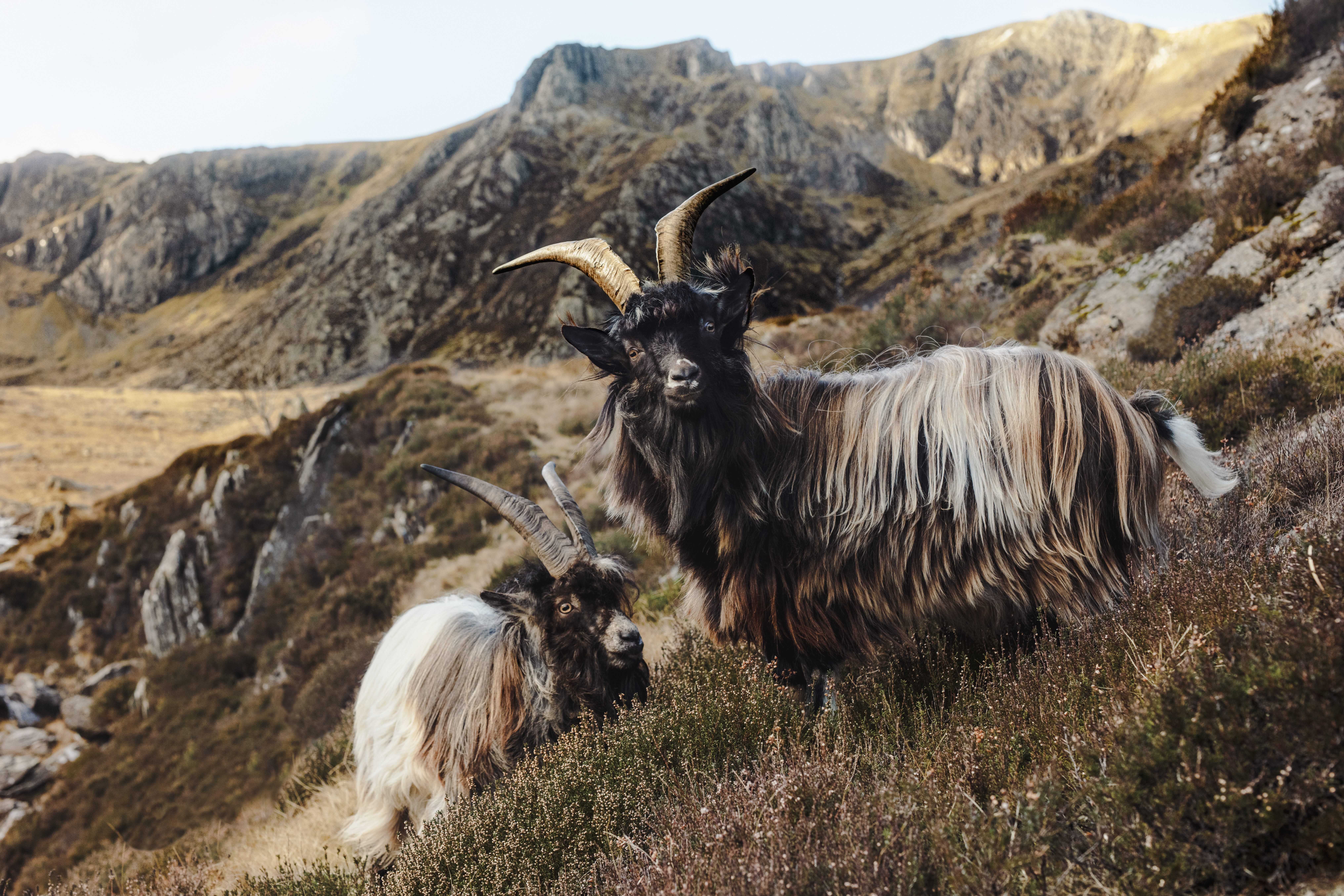 English: Two mountain grazing on a cliff-face near Llyn Idwal in the Ogwen Valley. قالب:Wiki Loves Earth 2023 special nomination |