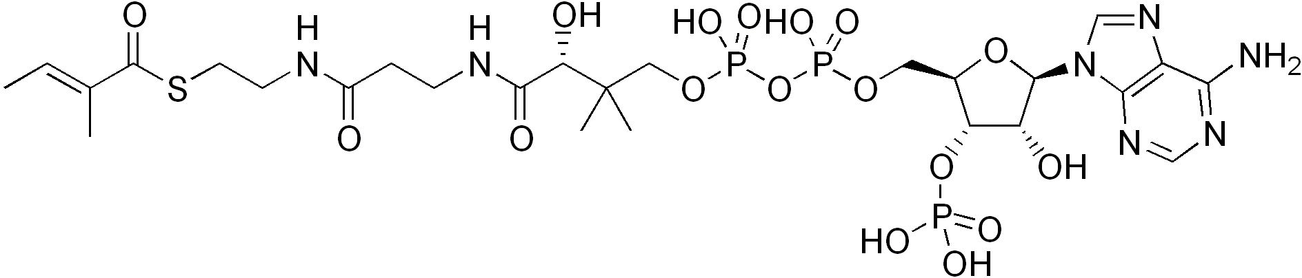 English: chemical structure of tiglyl-CoA |
