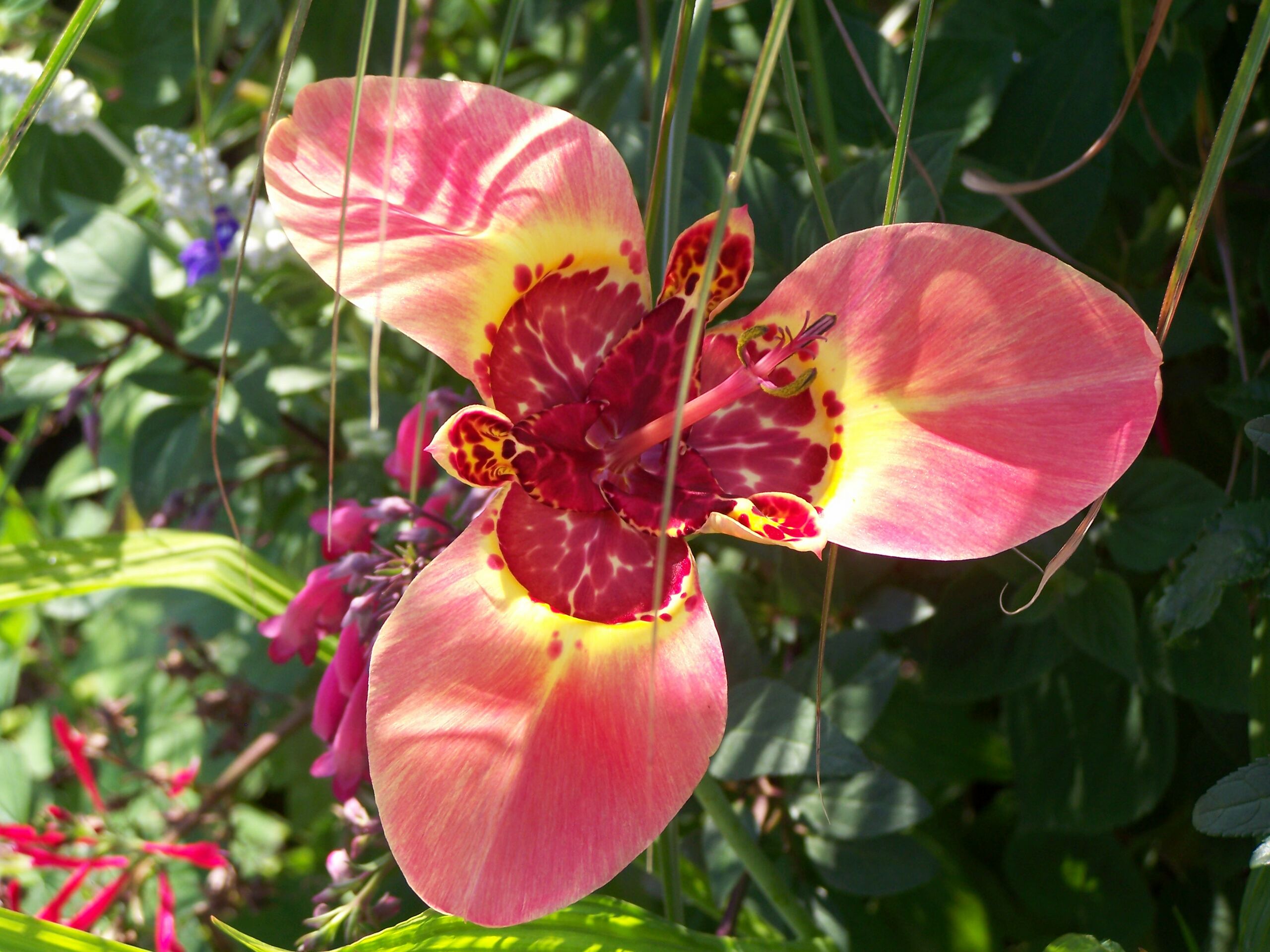 English: Tigridia flower in a garden in Germany, presumably a Tigridia pavonia cultivar |