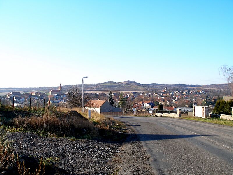 (بالتشيكية) English: Town of Třebenice, Litoměřice Distict, Czech Republic, as seen from the northeast. In the left church of the Nativity of the Virgin Mary, further in the right formr Lutheran church which nowadays houses Museum of Bohemian Garnet |