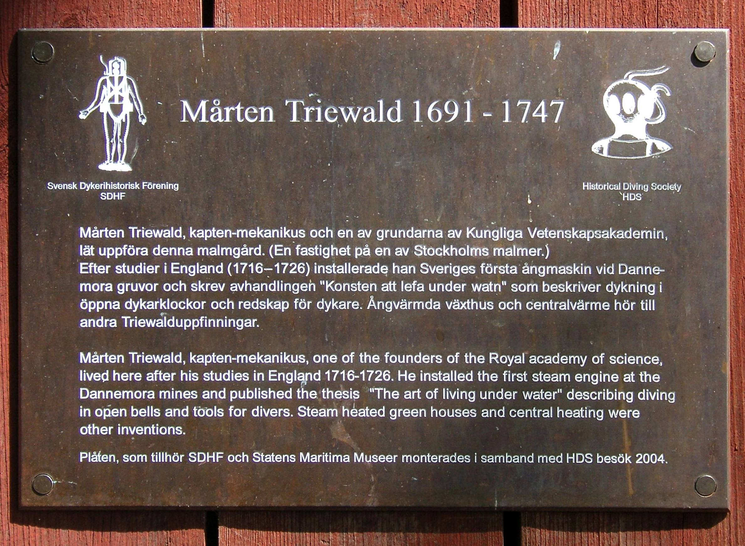 Svenska: Informationstavala vid Mårten Triewalds Malmgård i Stockholm |