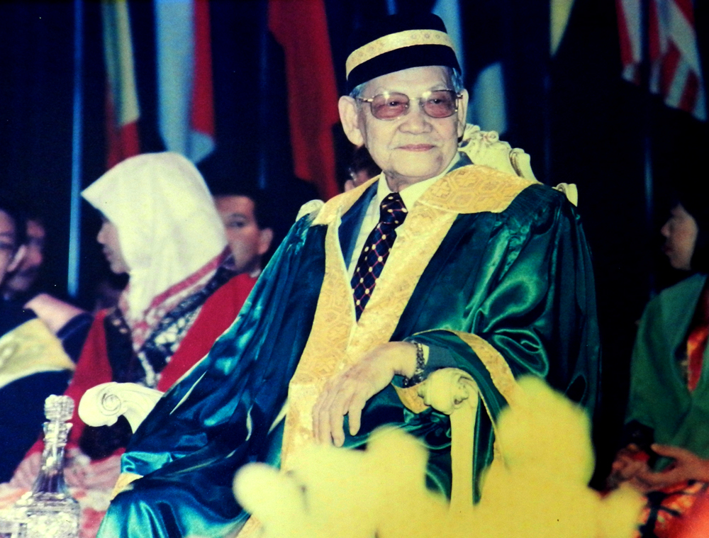 English: T.Y.T. Tun Datuk Patinggi (Dr.) Ahmad Zaidi Adruce, in his capacity as the Head-of-State of Sarawak, also served as Chancellor in Universiti Malaysia Sarawak. |