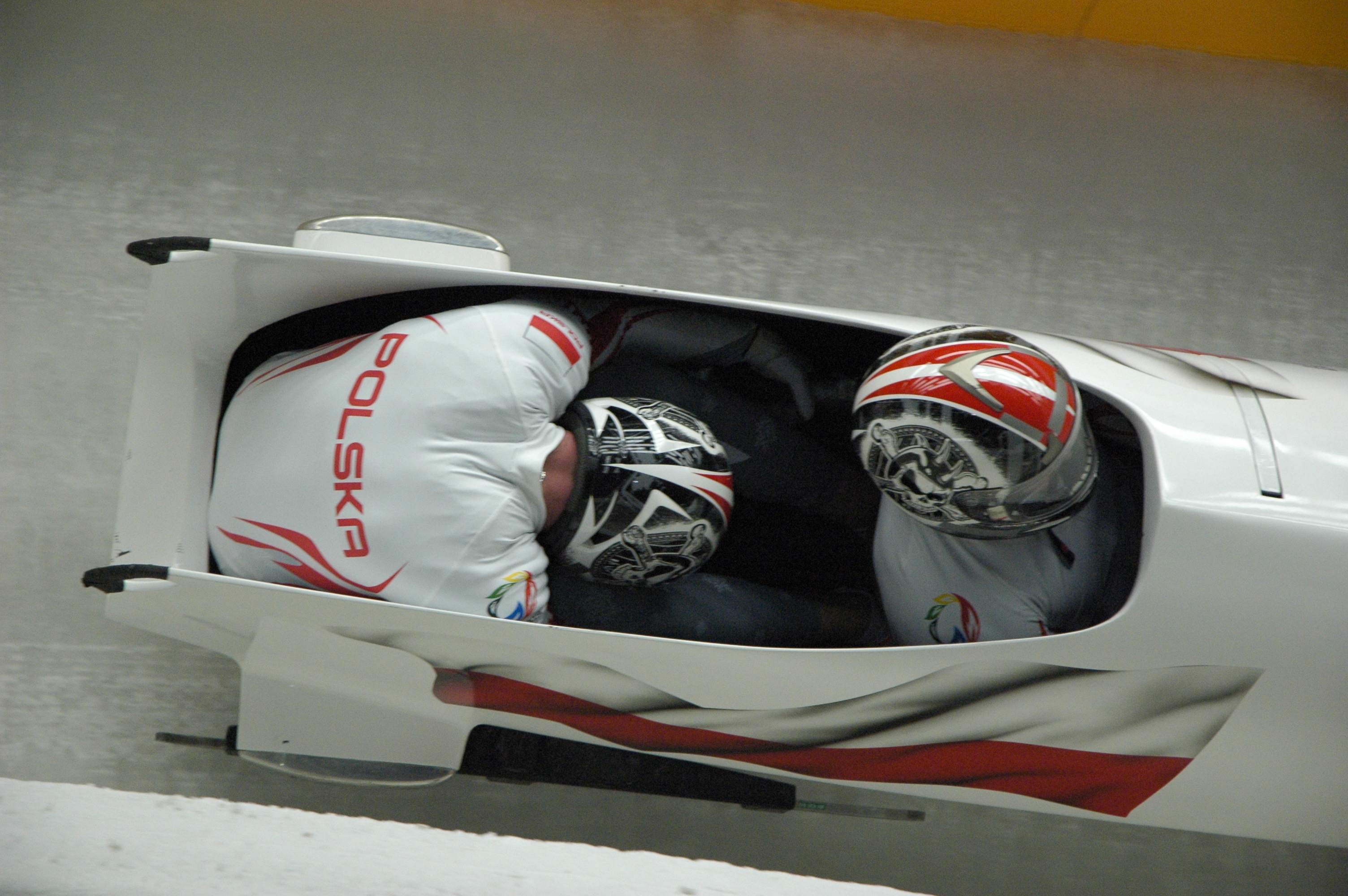 ملف:Two-man bobsleigh, 2014 Winter Olympics, Poland run 3.JPG