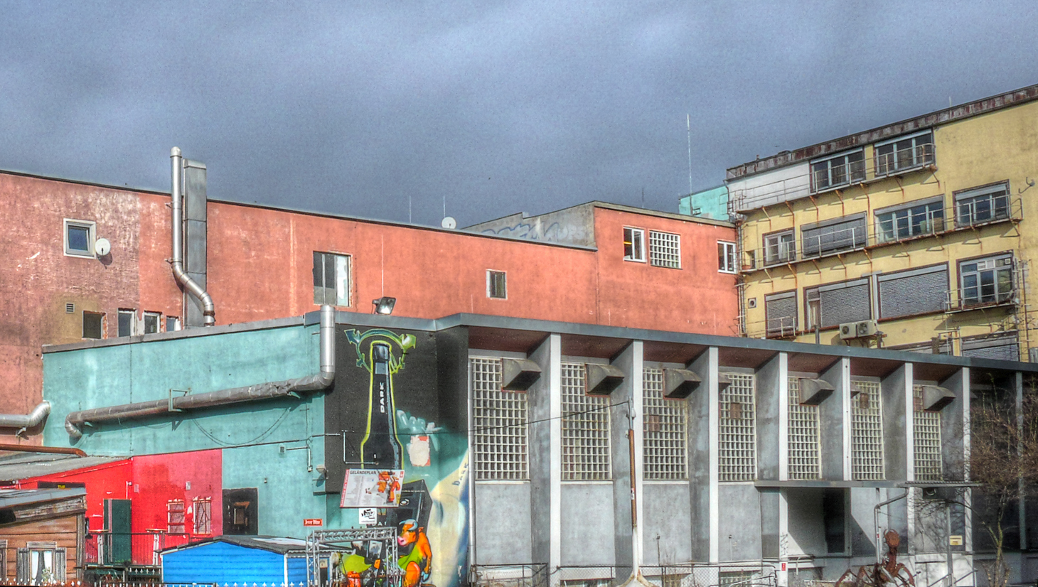 English: This image shows the techno club Ultraschall, which was located in the potato drying facility of the former Pfanni factory in Munich.