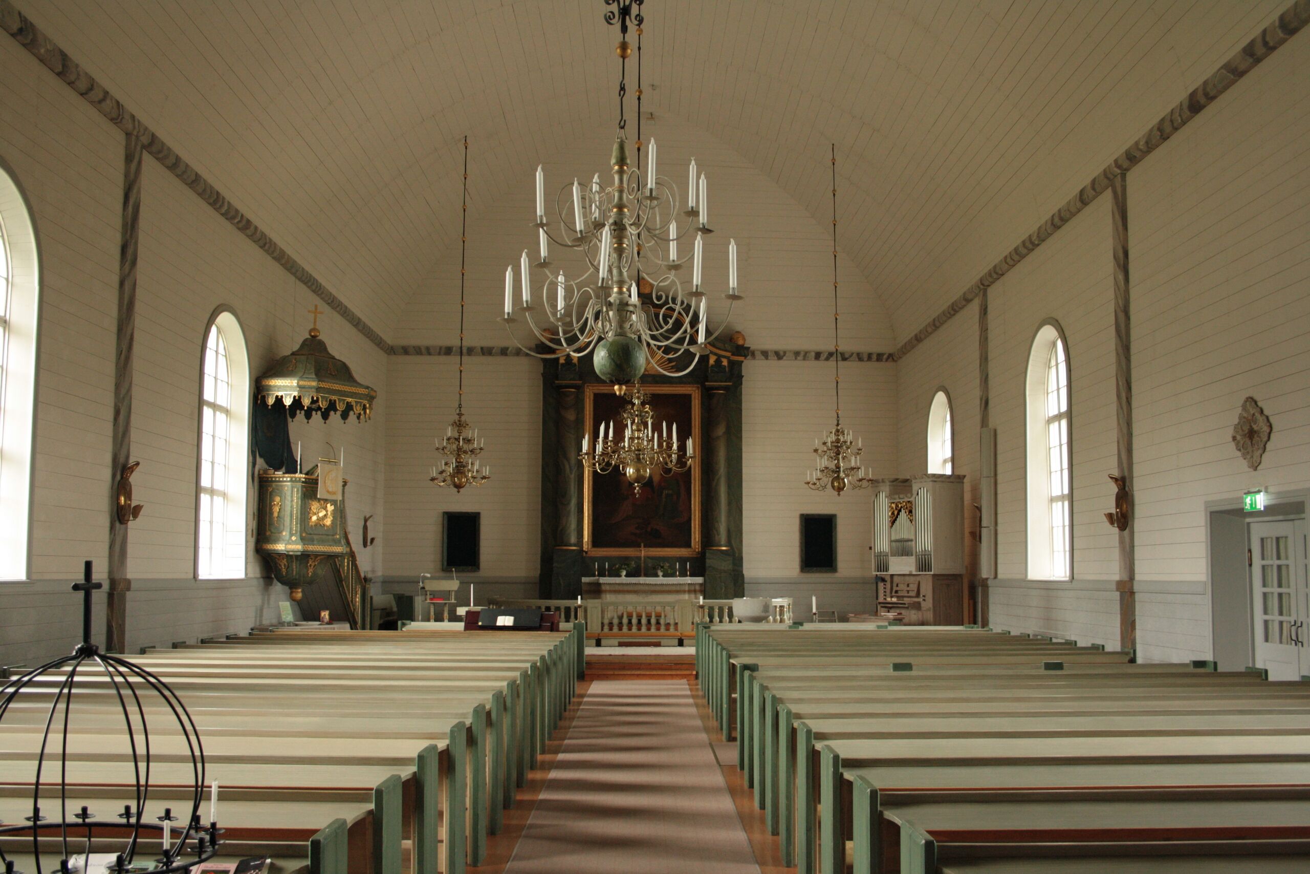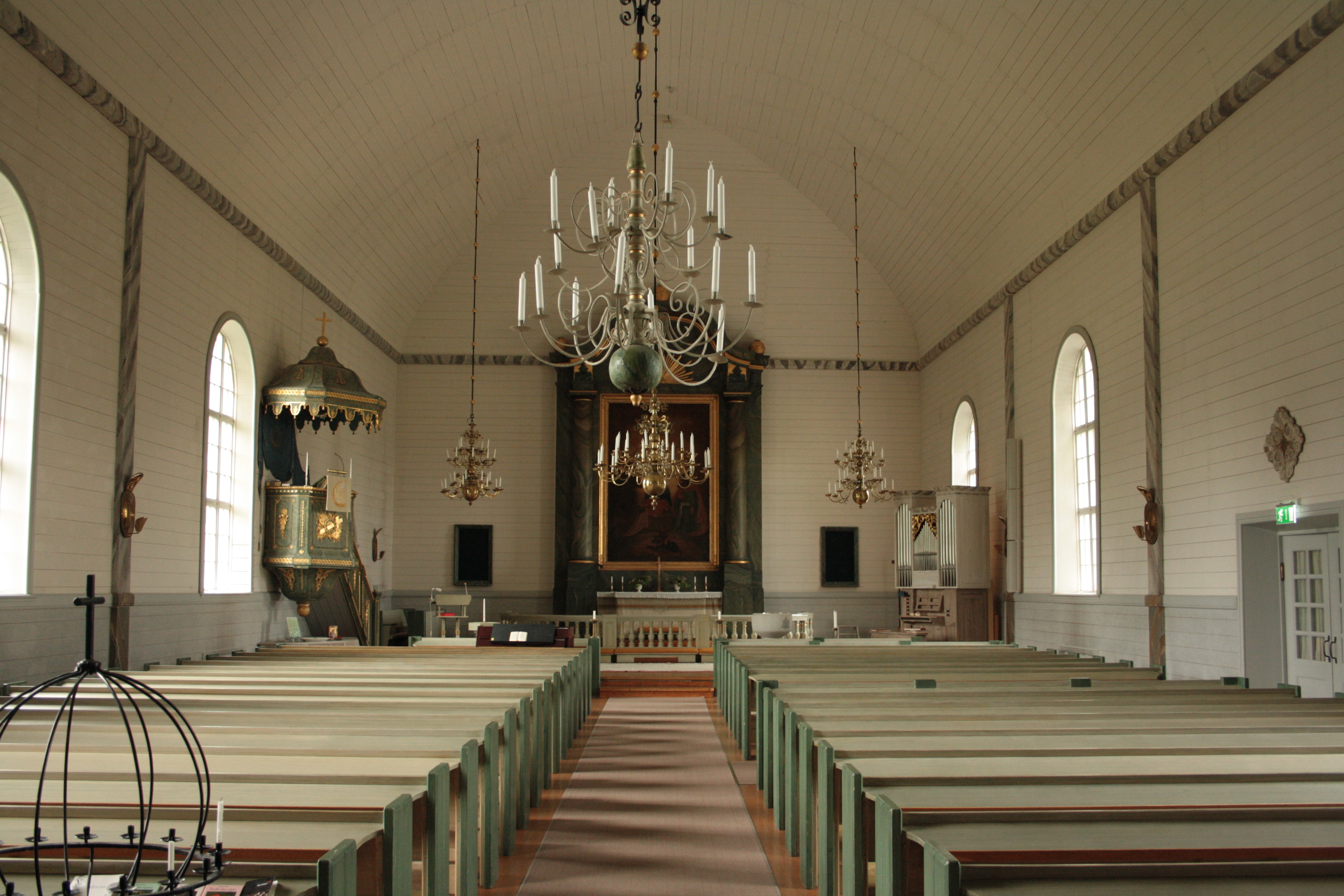 English: Vännäs kyrka, Sweden. Aisle of the church.