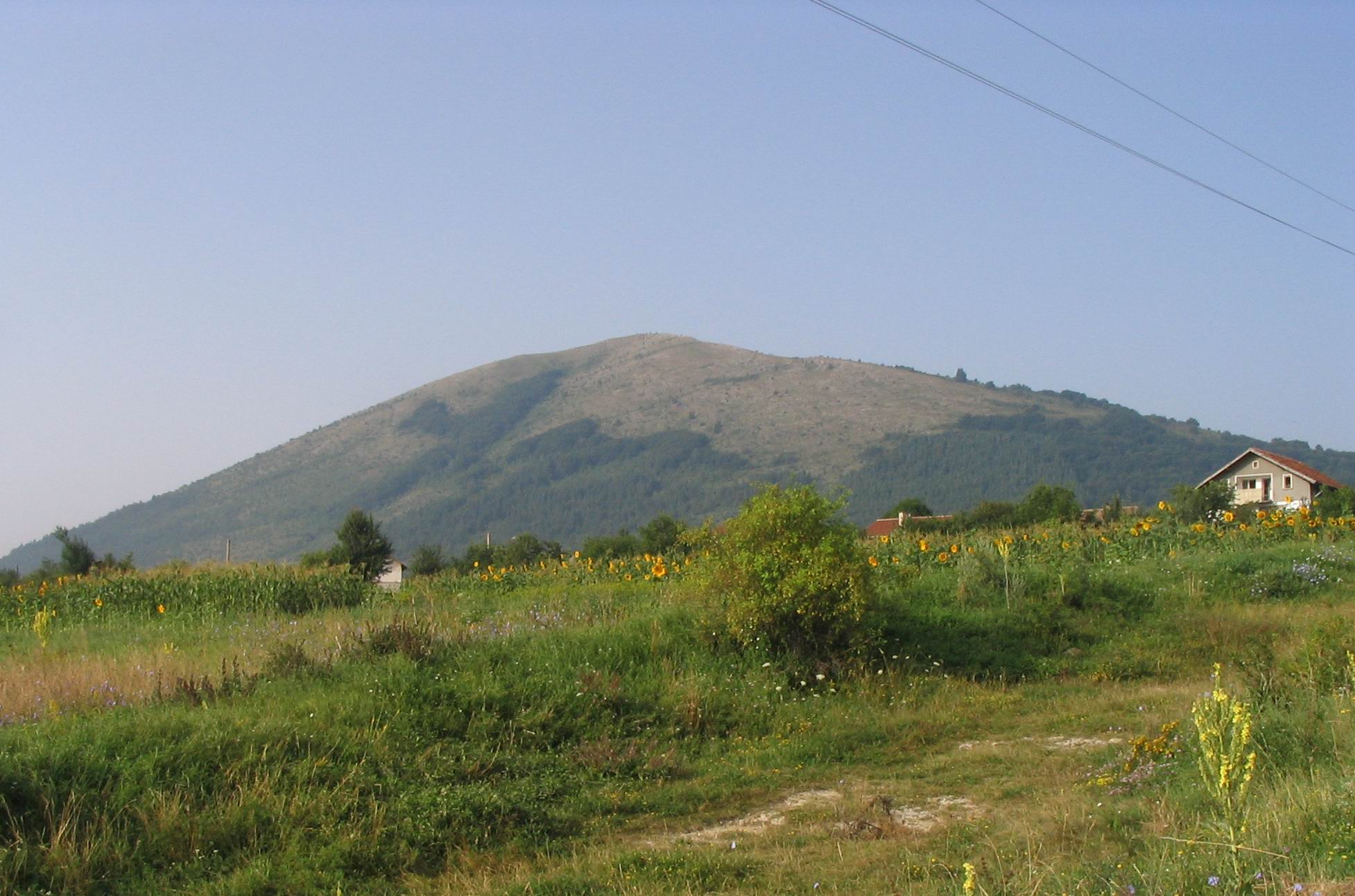 English: Peak Lyubash of mountain Lyubash as seen from village Lyalintsi, Bulgaria. |