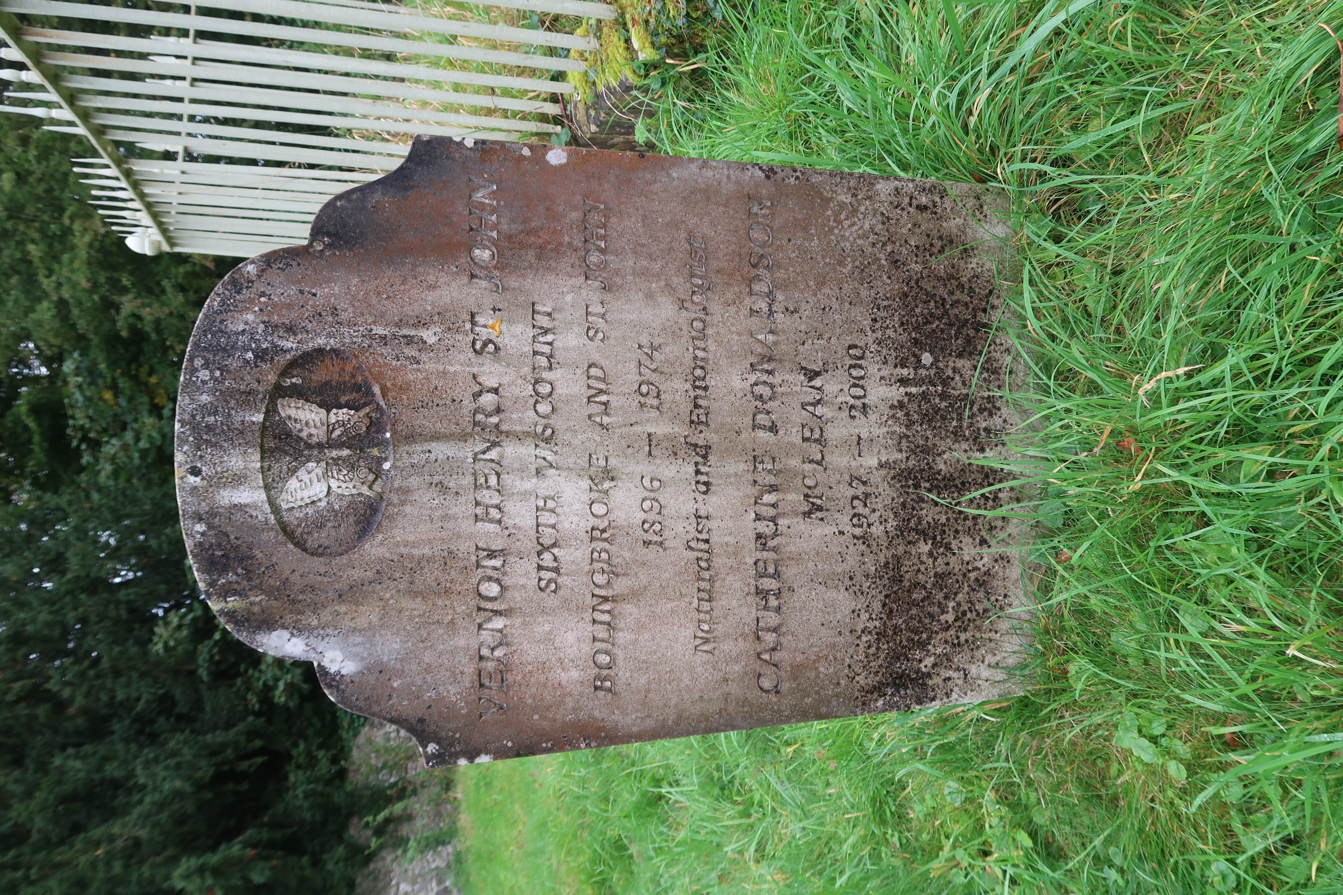 English: Headstone in St Mary's parish churchyard, Lydiard Tregoze, Cornwall, for Vernon Henry St John (1896–1974) and his companion Catherine Donaldson McLean |