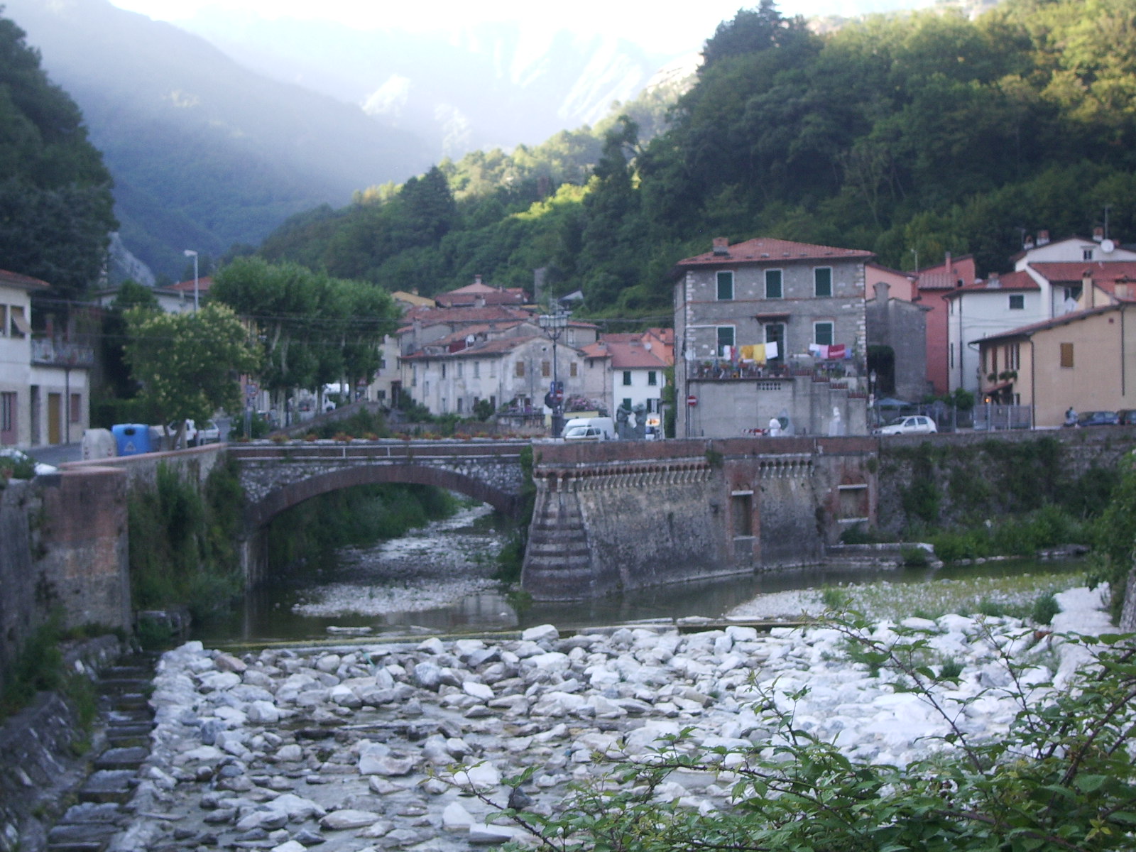 Description The place in Seravezza where the versilia river is formed by the union of Serra and vezza rivers