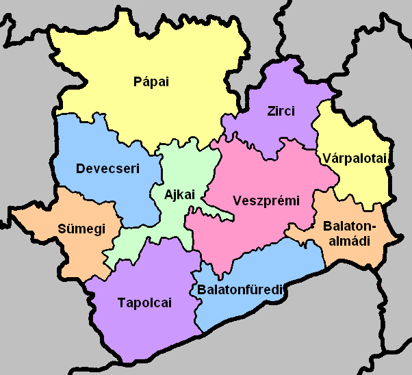 English: Map of Veszprém county's districts (مجرية) |