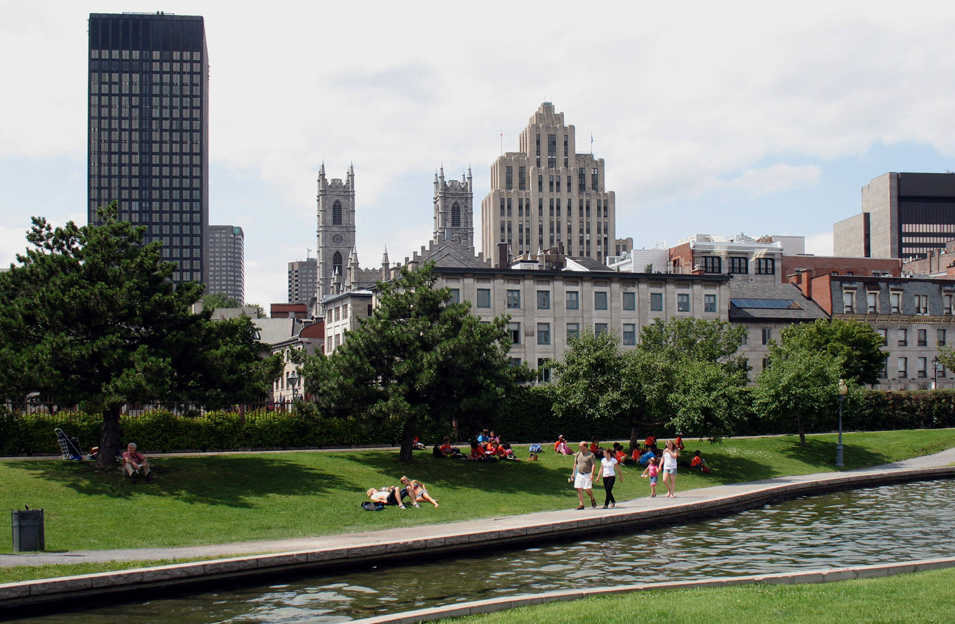 Français : Vieux-Montréal vu du Vieux-Port, Montréal, Canada. On aperçoit, au centre, la basilique Notre-Dame de Montréal et l’édifice Aldred. |