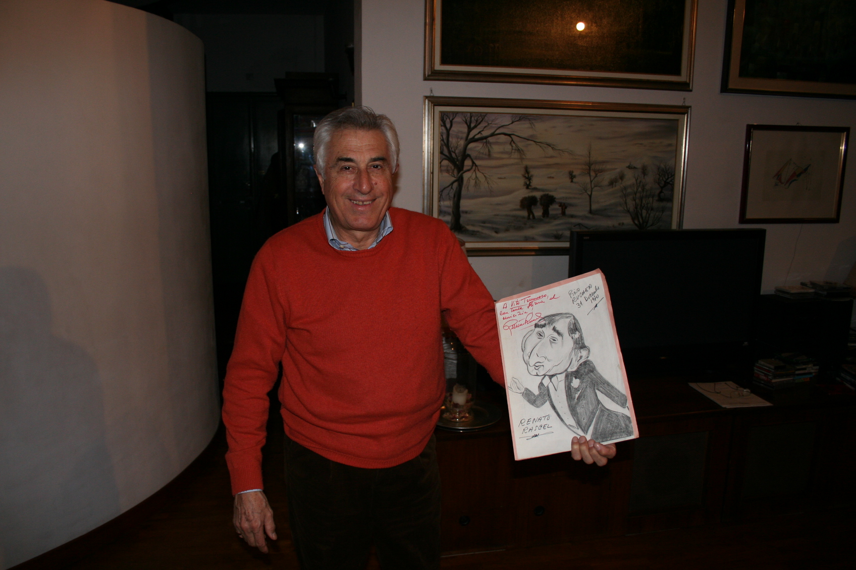 Italiano: Vito Tommaso con una caricatura di Renato Rascel English: Vito Tommaso with a caricature of Renato Rascel |