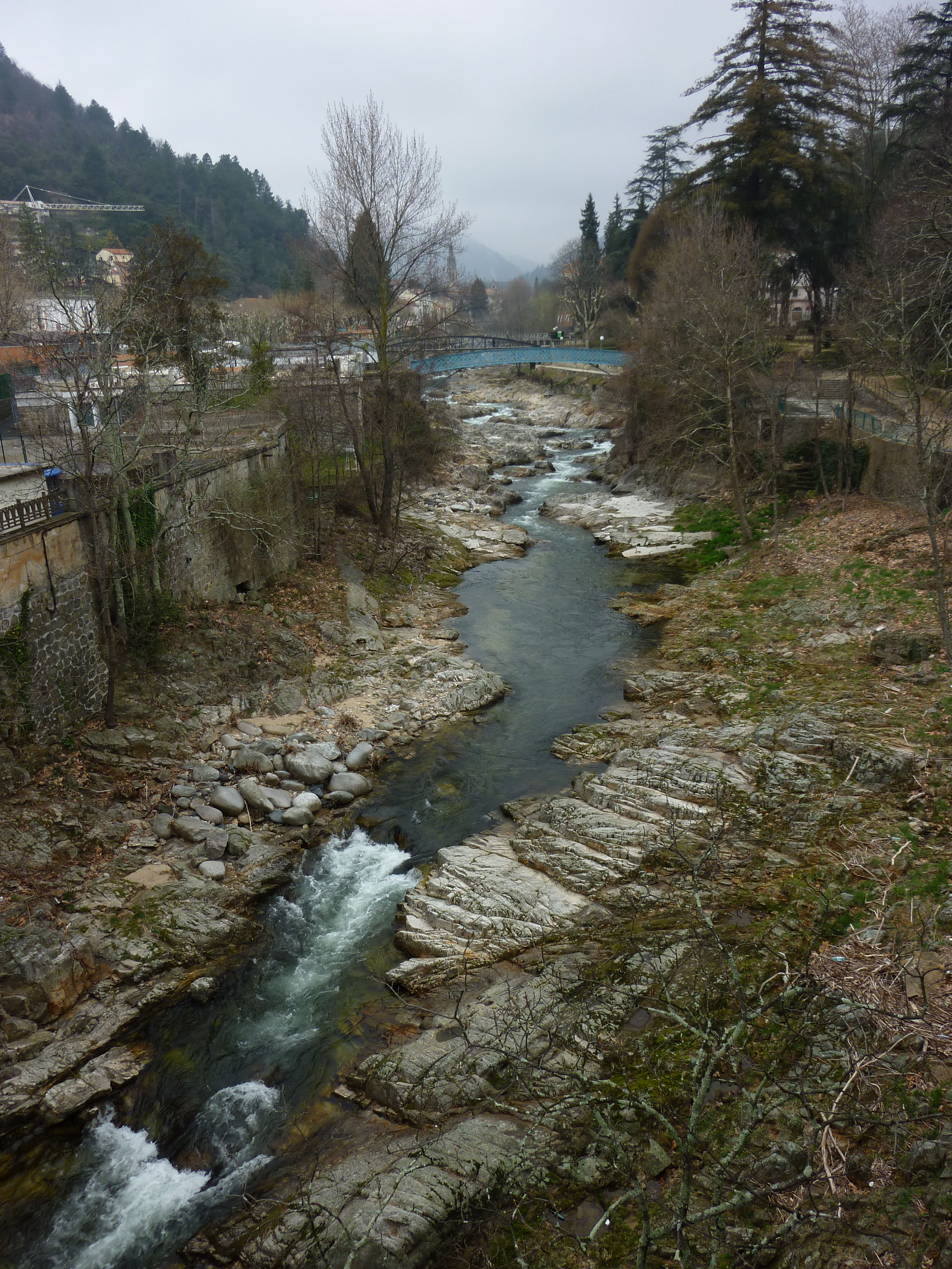 Français : La Volane à Vals les Bains, le long du parc. 1er jour du printemps, débit moyen. (Ardèche 07, France) |