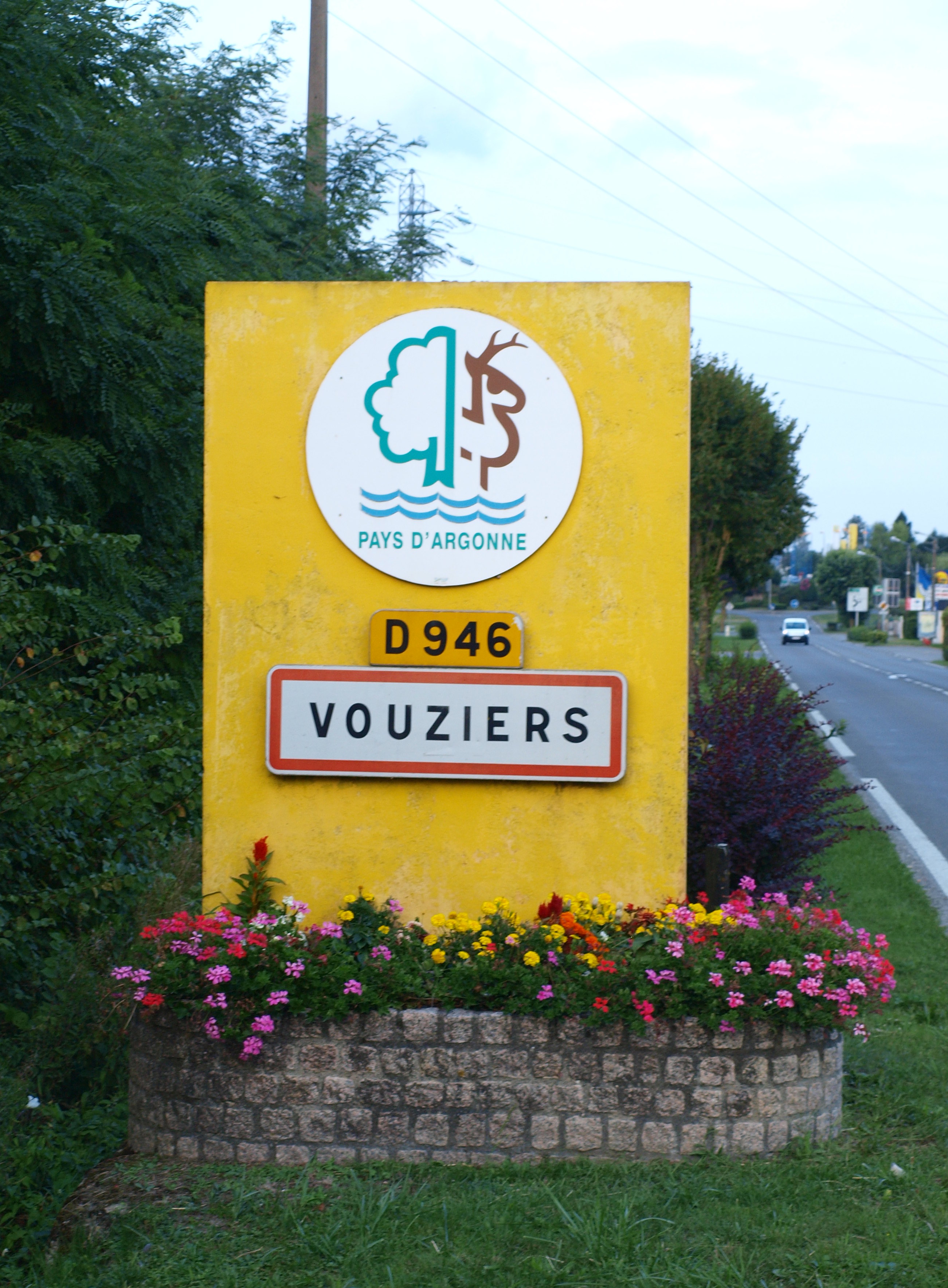 Français : Vouziers (Ardennes, France) ; panneaux d'agglomération du D 946 (ex-RN 46), en venant par l'ouest (Mazagran) |