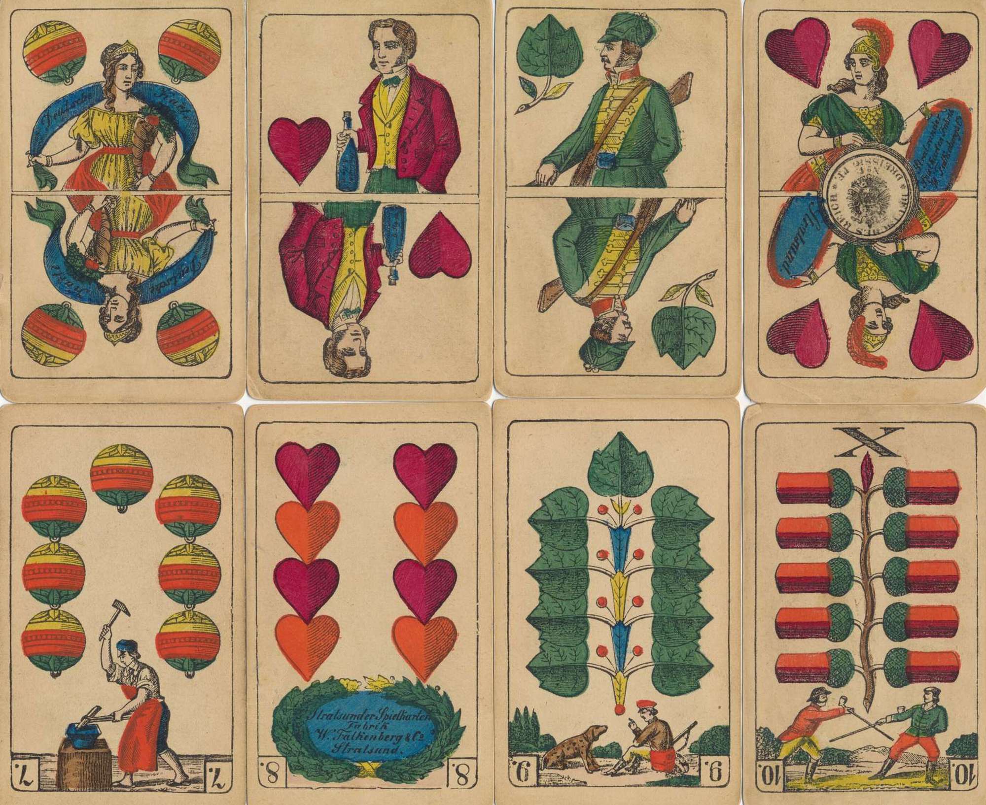| Spielkartensatz Preußisches Doppelbild mit Genreszenen des Herstellers W. Falkenberg & Co. |