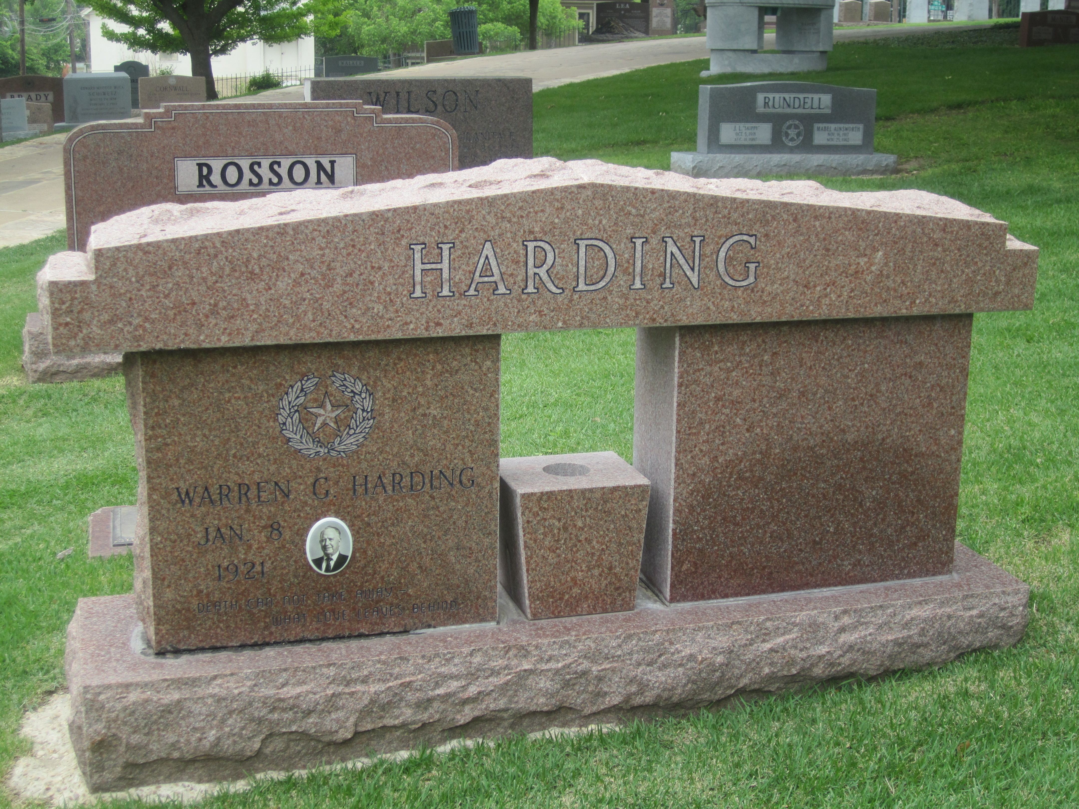 English: I took photo at TX State Cemetery in Austin of Warren Glenn Harding monument, with a Canon camera. |