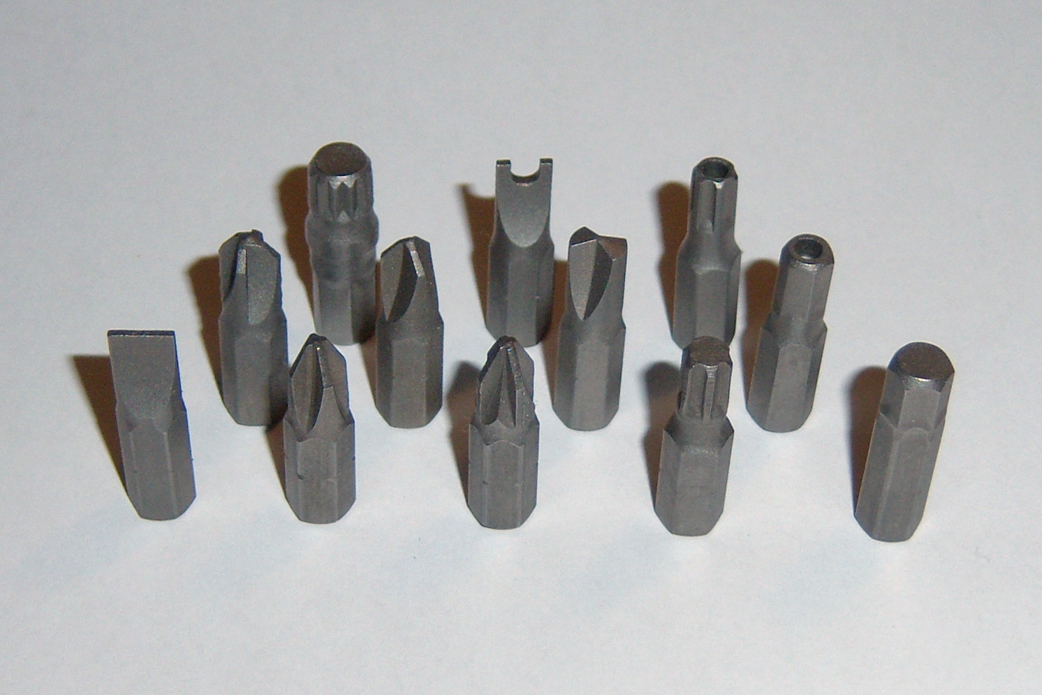 • 2010-04-10 14:46 Suit 1600×1200× (2826079 bytes) {{Information |Beschreibung = Werkzeugbits: Vorne (ltr): Slotted/Schlitz 6,5 mm; Phillips PH2; Pozidriv PZ2; Torx T30; Inbus/Allen 6 mm; Mitte (ltr): (vlnr): Torq-Set 10; Tri-Wing 4; One-Way 3; Inbus/Allen (Tamper-resistant) 5 mm; Hinten (ltr): (vlnr): T