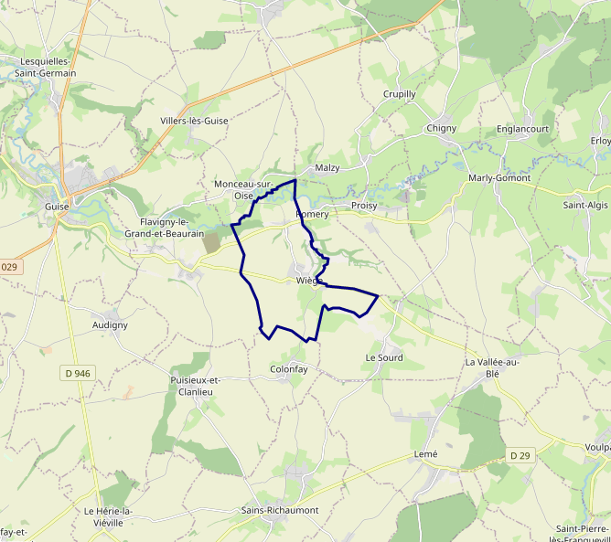 Français : Carte OSM de Wiège-Faty, Aisne |