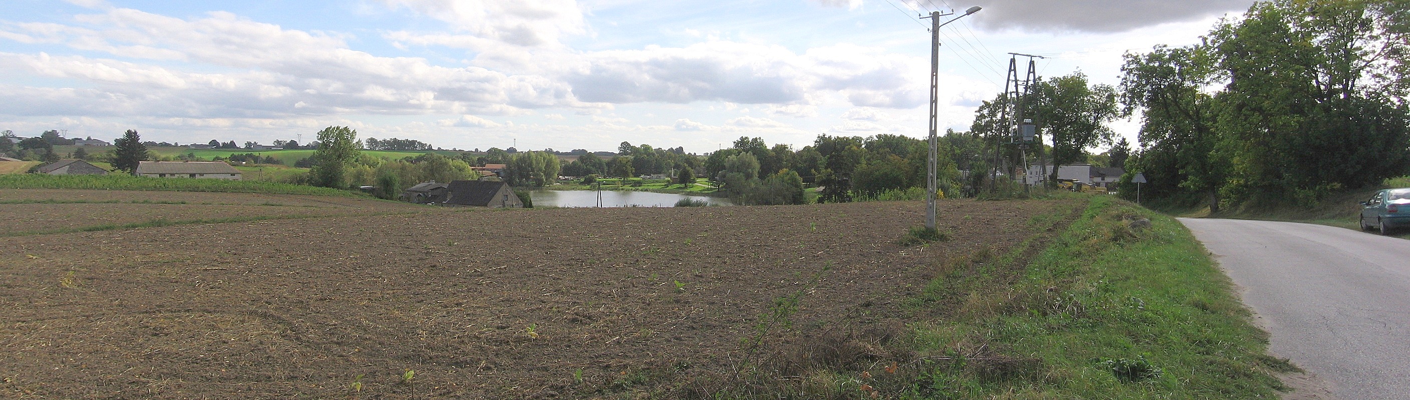 Polski: widok wsi Szembruczek z okolicy szkoły |