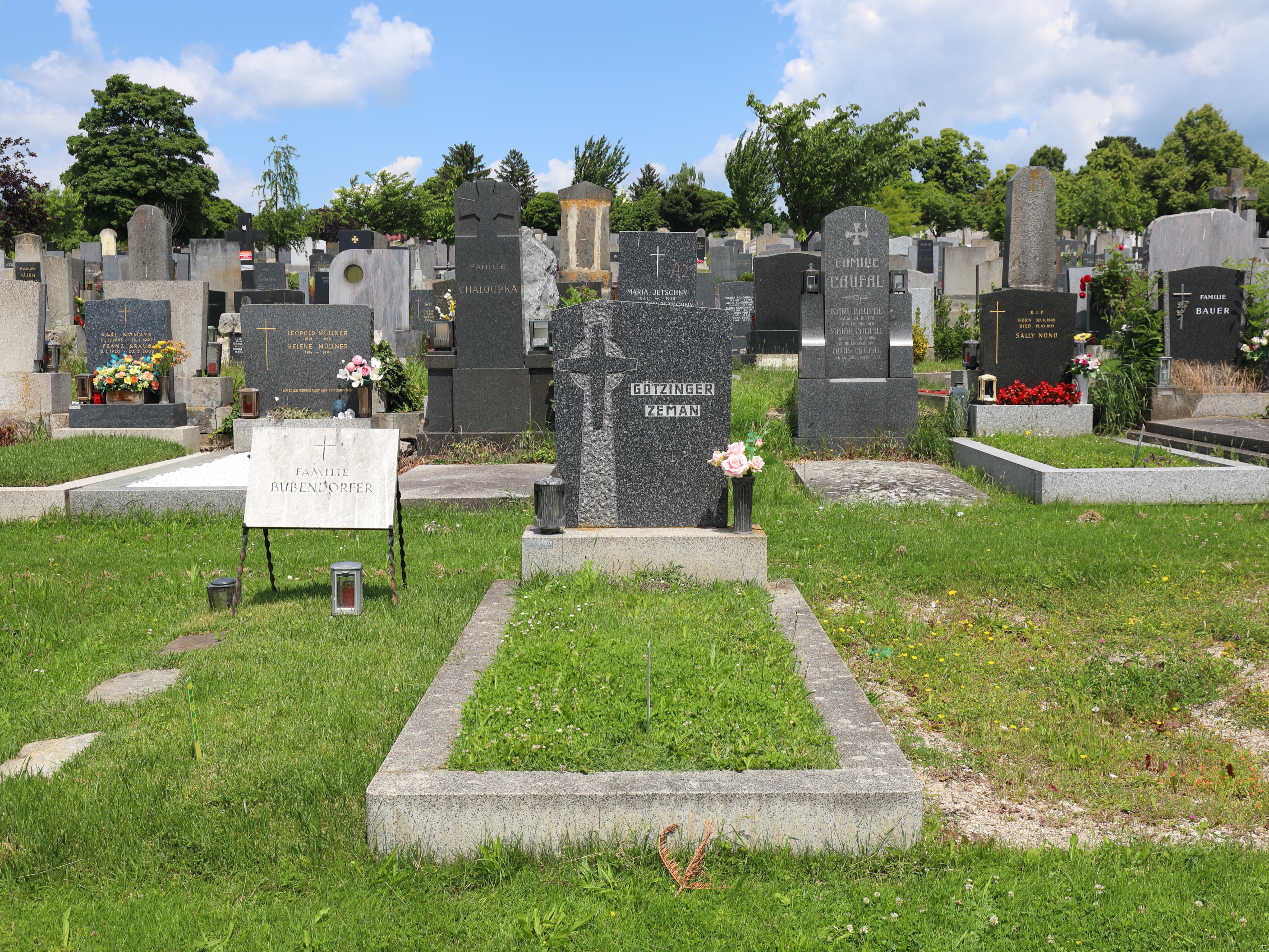 Deutsch: Die Grabstätte der Familie Zeman und Götzinger auf dem Baumgartner Friedhofes im 14. Wiener Gemeindebezirk Penzing, in der auch der Fußballer Walter Zeman (1927–1991) beigesetzt ist.