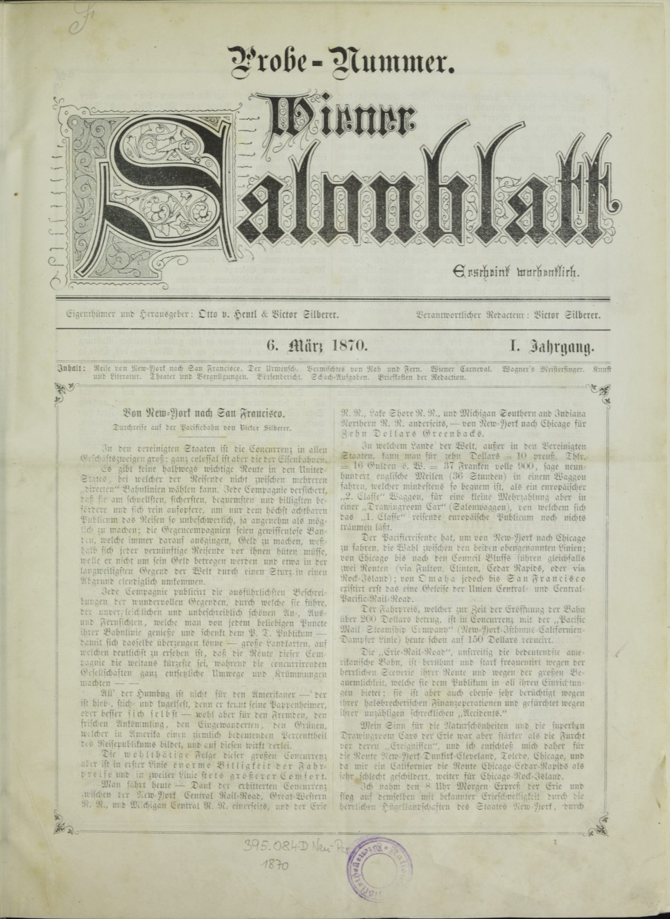 Deutsch: Eigenthümer und Herausgeber: Otto von Hentl & Victor Silberer |