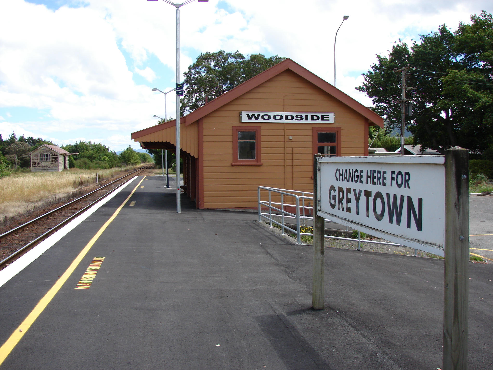 - 2007-12-22 22:19 Matthew25187 2048×1536 (1499344 bytes) A reminder of bygone days. The original Woodside station building and a platform signboard that is reminiscent of the one that was located on the original island platform, and which read: "Woodside Junction. Change here for Greytown." Photographed by [