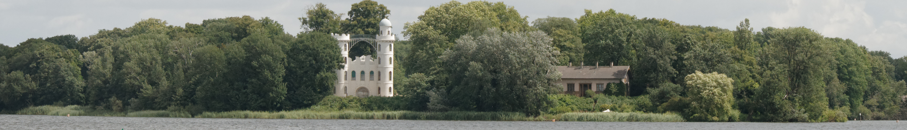 Deutsch: Pfaueninsel in Berlin mit Schloss von der Havel aus gesehen. |