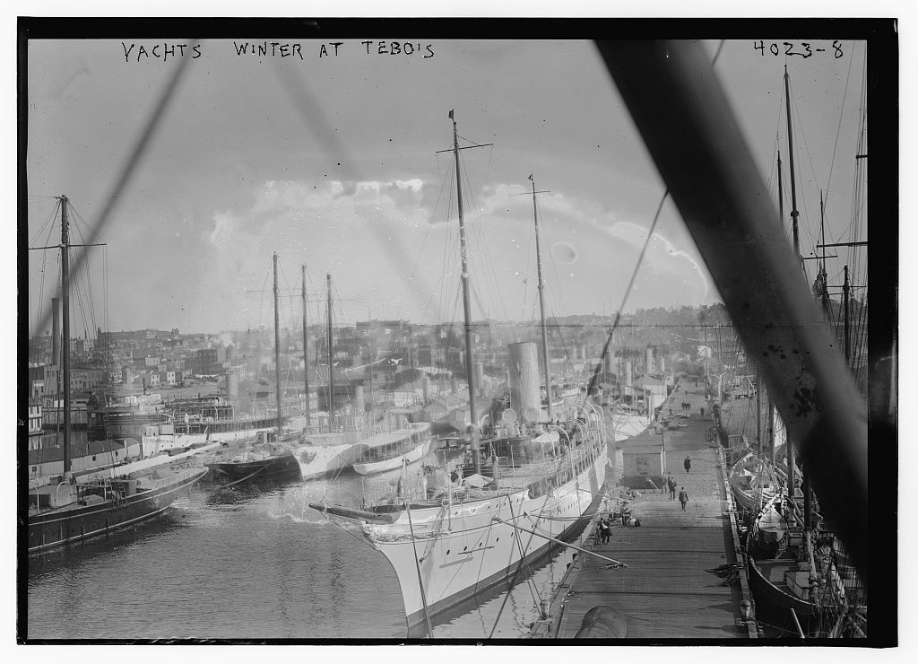 Bain News Service,, publisher. Yachts winter at Tebo's [between ca. 1915 and ca. 1920] 1 negative : glass ; 5 x 7 in. or smaller. Notes: Title from unverified data provided by the Bain News Service on the negatives or caption cards. Forms part of: George Grantham Bain Collection (Library of Congress). Format: Glass negatives. Rights Info: No known restrictions on publication. Repository: Library of Congress, Prints and Photographs Division, Washington, D.C. 20540 USA, hdl.loc.gov/loc.pnp/pp.print General information about the Bain Collection is available at hdl.loc.gov/loc.pnp/pp.ggbain Higher resolution image is available (Persistent URL): hdl.loc.gov/loc.pnp/ggbain.23037 Call Number: LC-B2- 4023-8 |