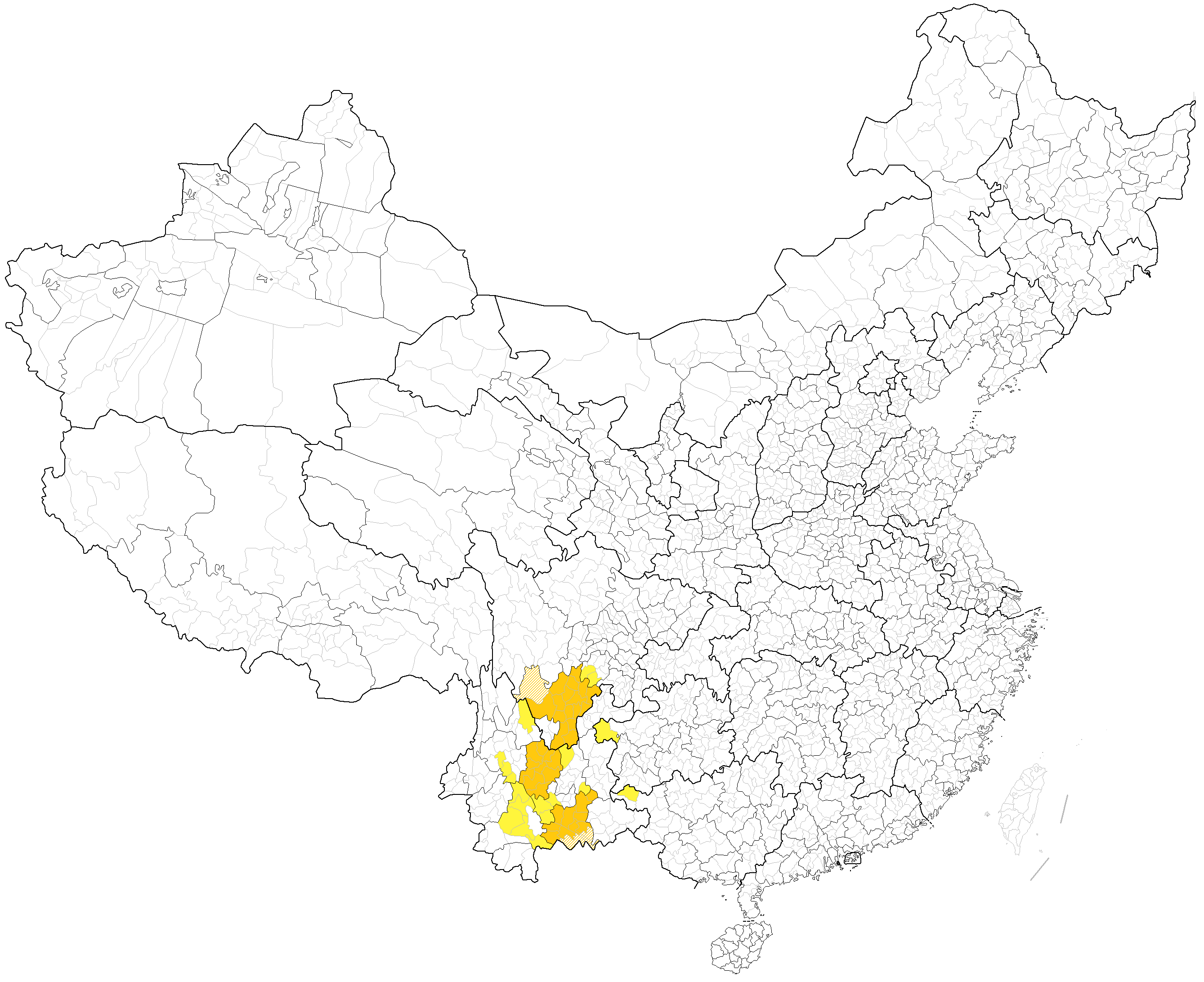 ملف:Yi autonomous prefectures and counties in China.png