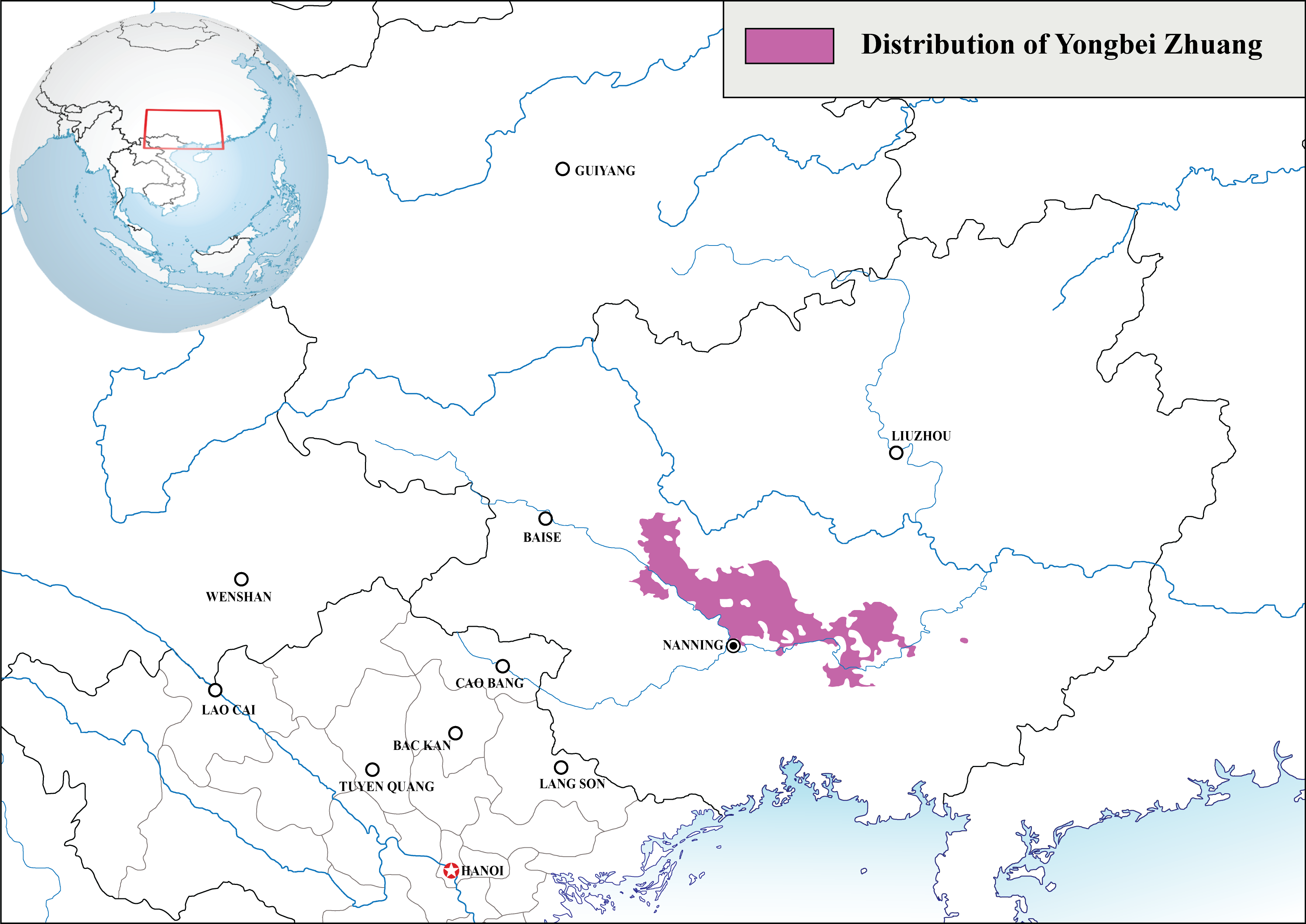 English: Geographic distribution of Yongbei Zhuang dialect