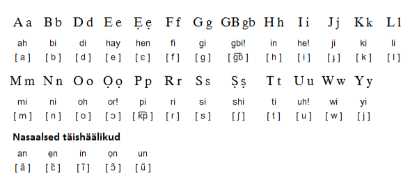 Yoruba_alphabet.png (589 × 267 بكسل حجم الملف: 22 كيلوبايت، نوع MIME: image/png)