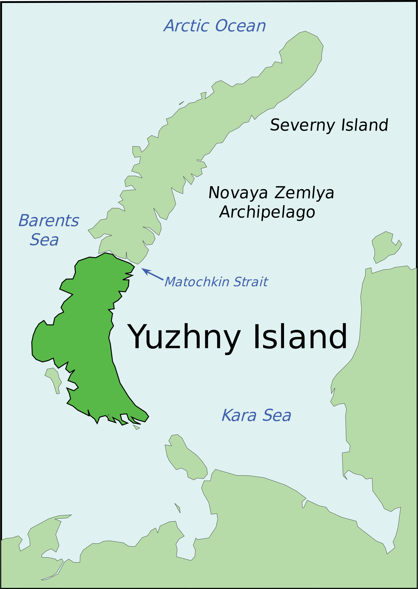 English: Yuzhny Island, of the Novaya Zemlya archipelago. Created based on images from the CIA's World Fact Book.