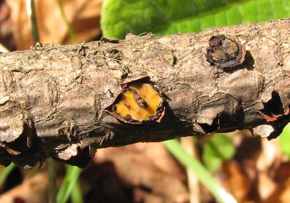 English: A sporocarp of the ascomycete fungus Zeus olympius Minter & Diam. Photographed in Bulgaria, Slavianka mountain. "Notes: Zeus olympius. On dead twigs of Bosnian pine"