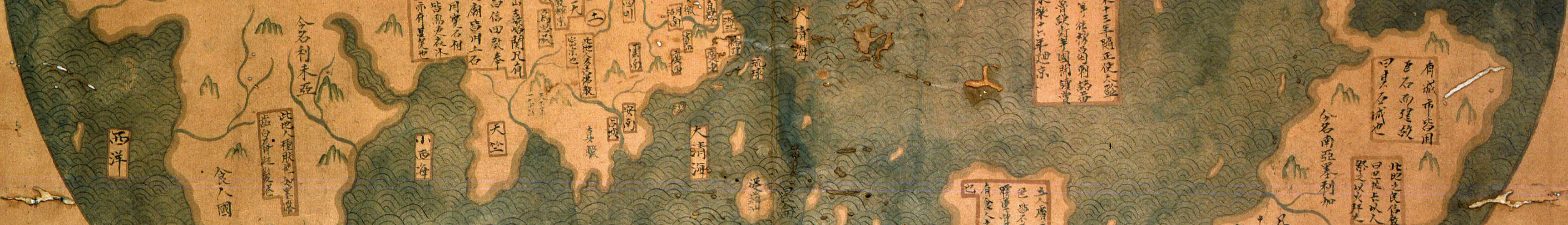 | Description | Photo from www.economist.com of a 1763 Chinese map of the world, claiming to be a reproduction of a 1418 map made from Zheng He's voyages. Lui Gang stated he discovered it in 2005 but it is disputed as a possible forgery. |