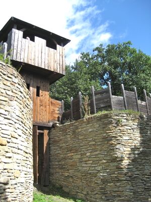 In the 7th and 8th centuries, the development of the local Slavs accelerated. The first Slavic fortified settlements were built in present-day Moravia as early as the last decades of the 7th century.[54] From the end of the 7th century, it is possible to register the rise of a new social elite in Moravia, Slovakia and Bohemia—the warrior horsemen.[55] The social organization of the local Slavs continued to grow during the 8th century, which can be documented by further building and development of fortified settlements. In Moravia, they unambiguously concentrate around the river Morava. In Slovakia, the oldest Slavic fortified settlements are documented for the last decades of the 8th century. They were exclusively in areas which were not under direct Avar influence, but probably not built only as protection against them, because some of them are also found in northern territories (Orava, Spiš). Variation in pottery implies the existence of at least three tribes inhabiting the wider region of the northern Morava river in the early 9th century.[56] Settlement complexes from the period were unearthed, for instance, near modern Bratislava, Brno and Olomouc.[56] Fortresses erected at Bratislava, Rajhrad, Staré Město and other places around 800[21] evidence the development of local centres of power in the same regions.[8]