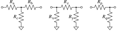 This section concerns pi-pads, T-pads and L-pads made entirely from resistors and terminated on each port with a purely real resistance.