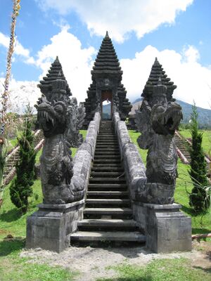 In Balinese tradition, nagas are often depicted battling garuḍas. Intricately carved nagas are found as stairs railings in bridges or stairs, such as those found in Balinese temples, Ubud monkey forest, and Taman Sari in Yogyakarta.