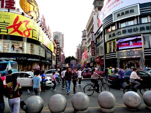 The territories encompassing modern-day Jiangxi Province—including Nanchang—was first incorporated into China during the Qin dynasty, when it was conquered from the Baiyue peoples and organized as Jiujiang Commandery (الصينية: 九江郡).[6] In 201 BC, during the Han dynasty, the city was given the Chinese name Nanchang and became the administrative seat of Yuzhang Commandery (豫章郡), and was governed by Guan Ying, one of Emperor Gaozu of Han's generals.[6] The name Nanchang means "southern flourishing", derived from a motto of developing what is now southern China that is traditionally attributed to Emperor Gaozu himself.[6]